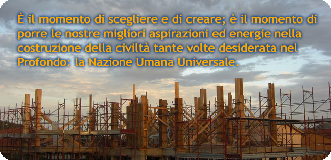 È il momento di scegliere e di creare; è il momento di porre le nostre migliori aspirazioni ed energie nella costruzione della civiltà tante volte desiderata nel Profondo: la Nazione Umana Universale.